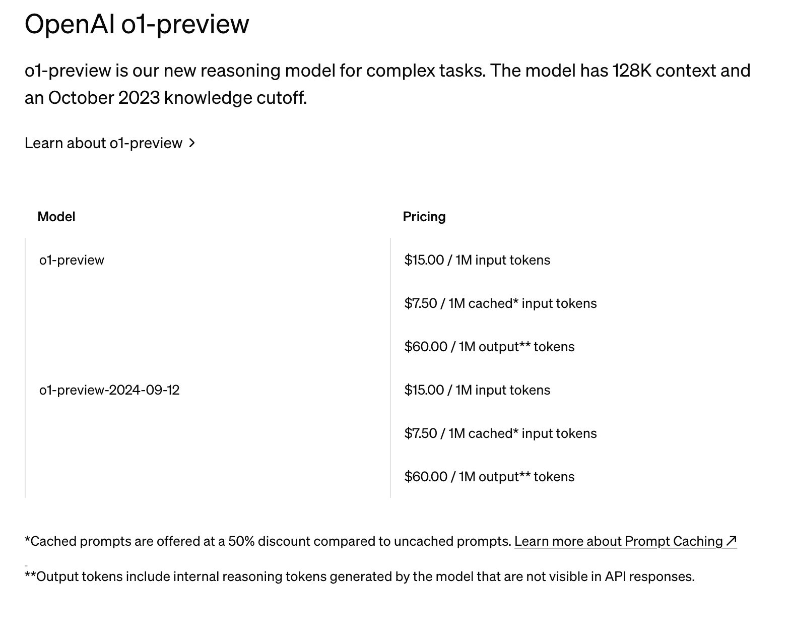 o1-preview’n API-käytön hinnat on kuvattu alla olevassa kuvassa:
